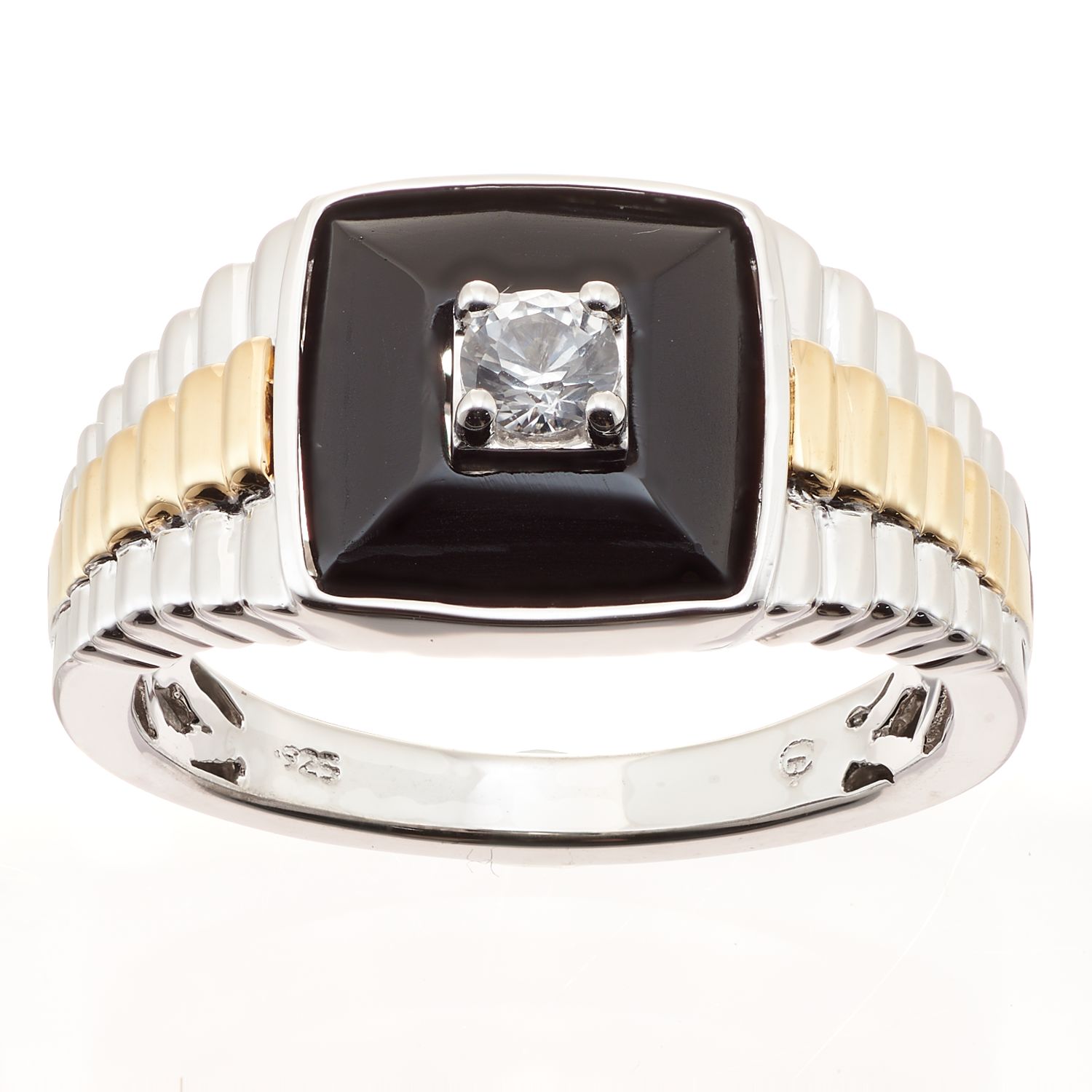 Men S Two Tone Sterling Silver Cubic Zirconia Ring